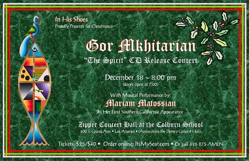 It’s a sound that you’ll find only in The Spirit! It’s a sound that will take you back through the centuries and deliver you to the doorstep of the 3rd millennium. Don’t miss this historic event! Renowned musical artist Gor Mkhitarian engages in a collaborative effort with Father Vazken Movsesian, founder of the Armenian Church Youth Ministries and the In His Shoes Mission, to produce music that resonates with the sacred and mystical sphere of the Armenian Church, and then to be set free in the modern world. Hear the spirit of the Lusavorich, Narekatzi and Shnorhali, in a language that drives the human soul to the Divine. Bring your family. Bring your friends. You’re invited to history in the making.